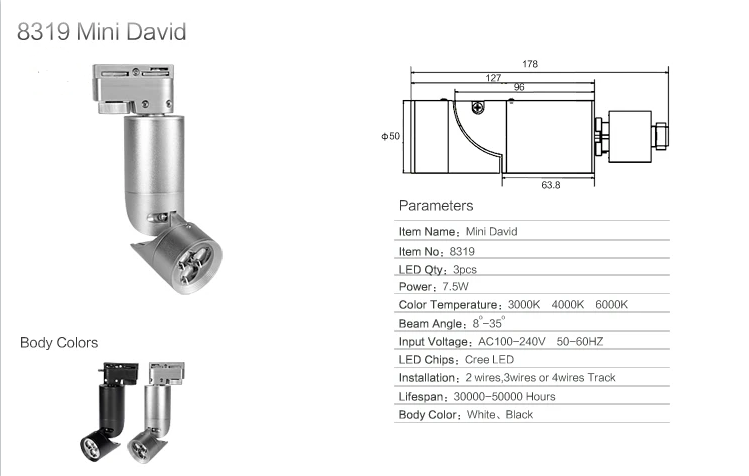 | Installing:Track light | Beam Angle: 8-35° | Certification: CE |